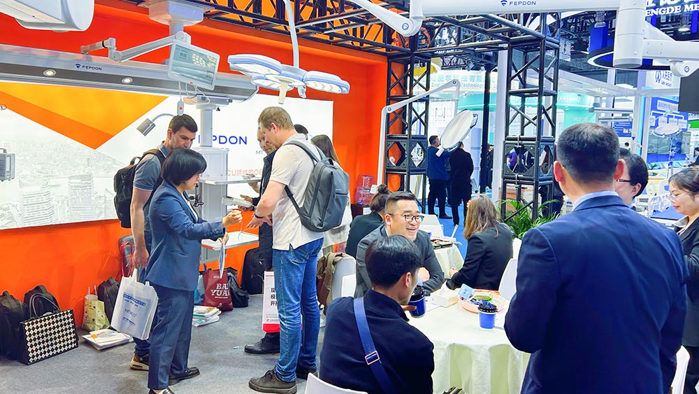 On April 11st t~14 th ,2024. Fepdon attended China International Medical Equipment Fair #CMEF in Shanghai. The products of Fepdon is very popular among the customers,especially the medical pendant and shadowless surgical light, and the booth is very lively.