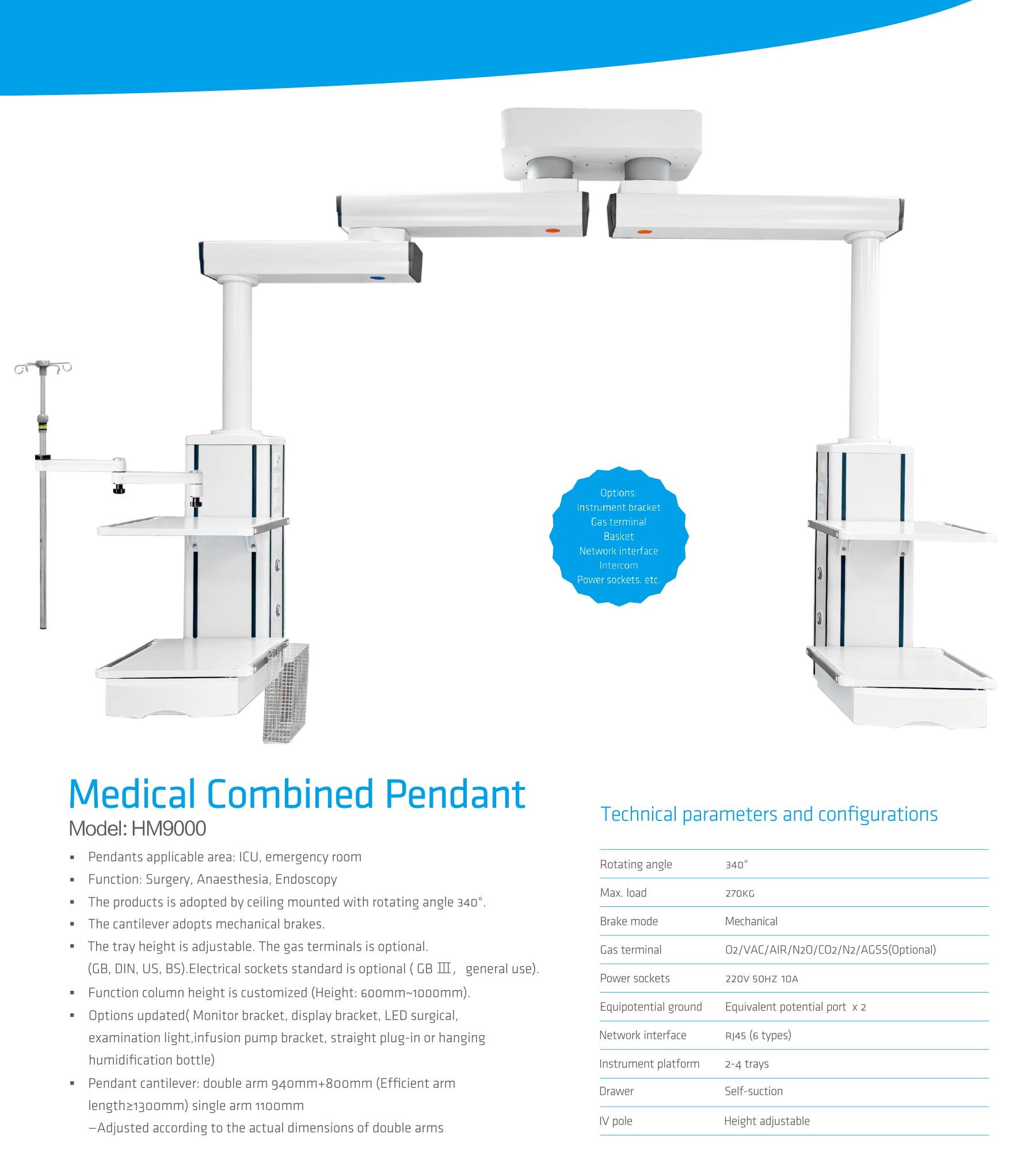 - Options updated( Monitor bracket, display bracket, LED surgical, examination light, infusion pump bracket, straight plug in or hanging humidification bottle)